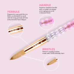 The #1 Acrylic Brush is now available in 3 stunning colors: Classic, Pink, and Black! Experience unparalleled acrylic application with Kiara Sky’s 100% pure Kolinsky Acrylic Brush. Proudly recognized as the #1 Acrylic Brush in the industry, our professional acrylic brushes reflect a perfect fusion of quality and innovation. Made to last, each brush has been carefully designed with a unique patented ergonomic design and is 100% hand-crafted from the finest materials. Each element of this Kiara Sky Acrylic Brush has been considered, from the stunning crystal cut handle and acetone resistant structure, to the soft flexible bristles that provide you with an effortless and smooth acrylic application.