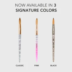 The #1 Acrylic Brush is now available in 3 stunning colors: Classic, Pink, and Black! Experience unparalleled acrylic application with Kiara Sky’s 100% pure Kolinsky Acrylic Brush. Proudly recognized as the #1 Acrylic Brush in the industry, our professional acrylic brushes reflect a perfect fusion of quality and innovation. Made to last, each brush has been carefully designed with a unique patented ergonomic design and is 100% hand-crafted from the finest materials. Each element of this Kiara Sky Acrylic Brush has been considered, from the stunning crystal cut handle and acetone resistant structure, to the soft flexible bristles that provide you with an effortless and smooth acrylic application.